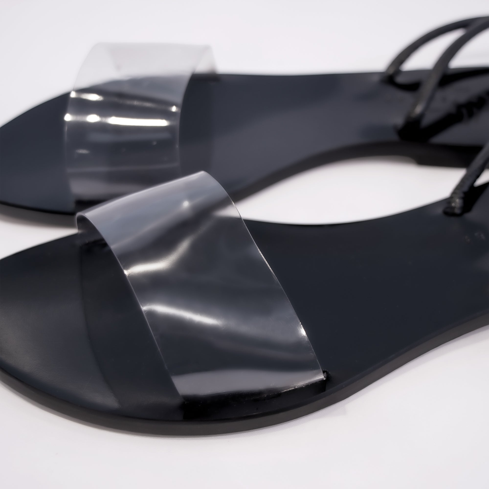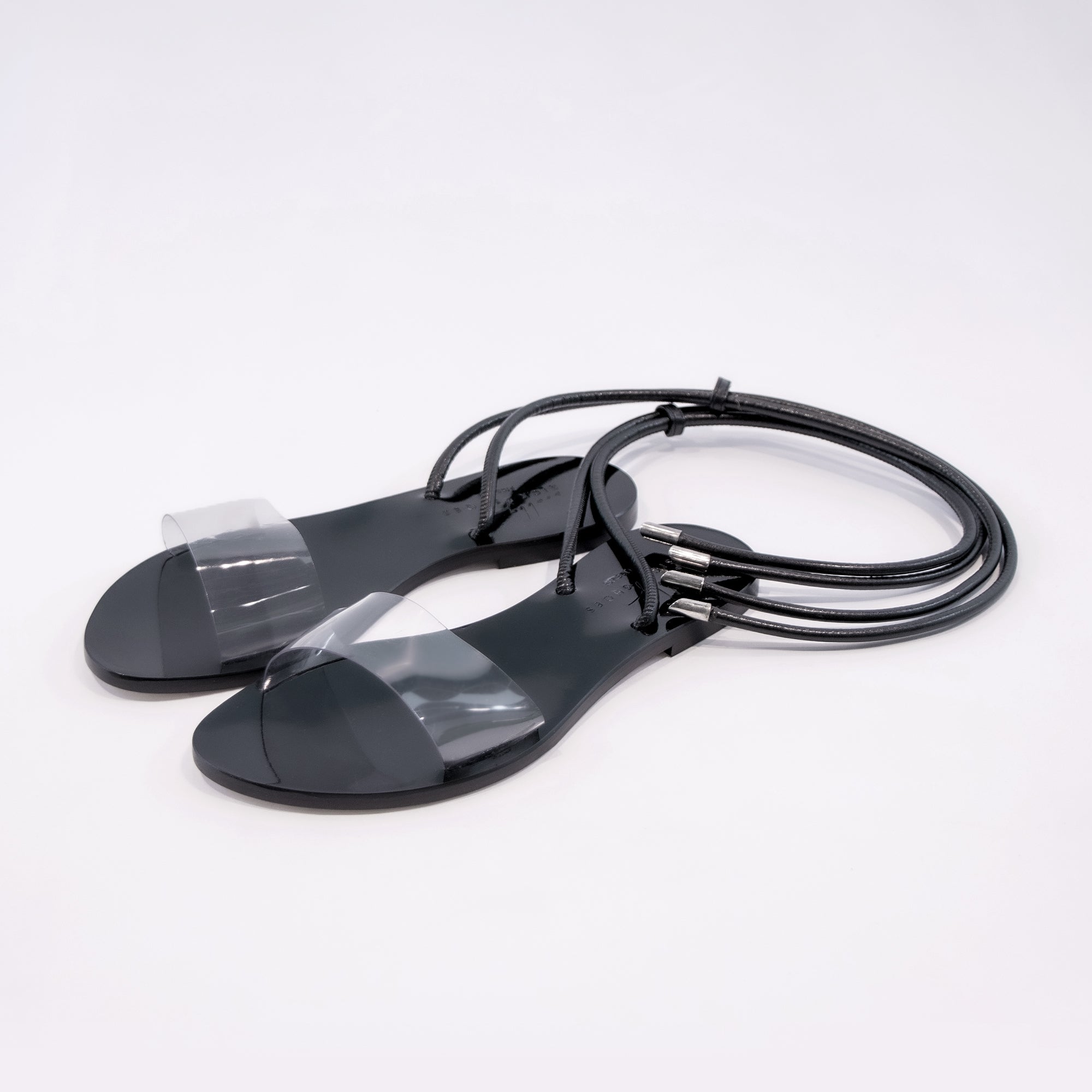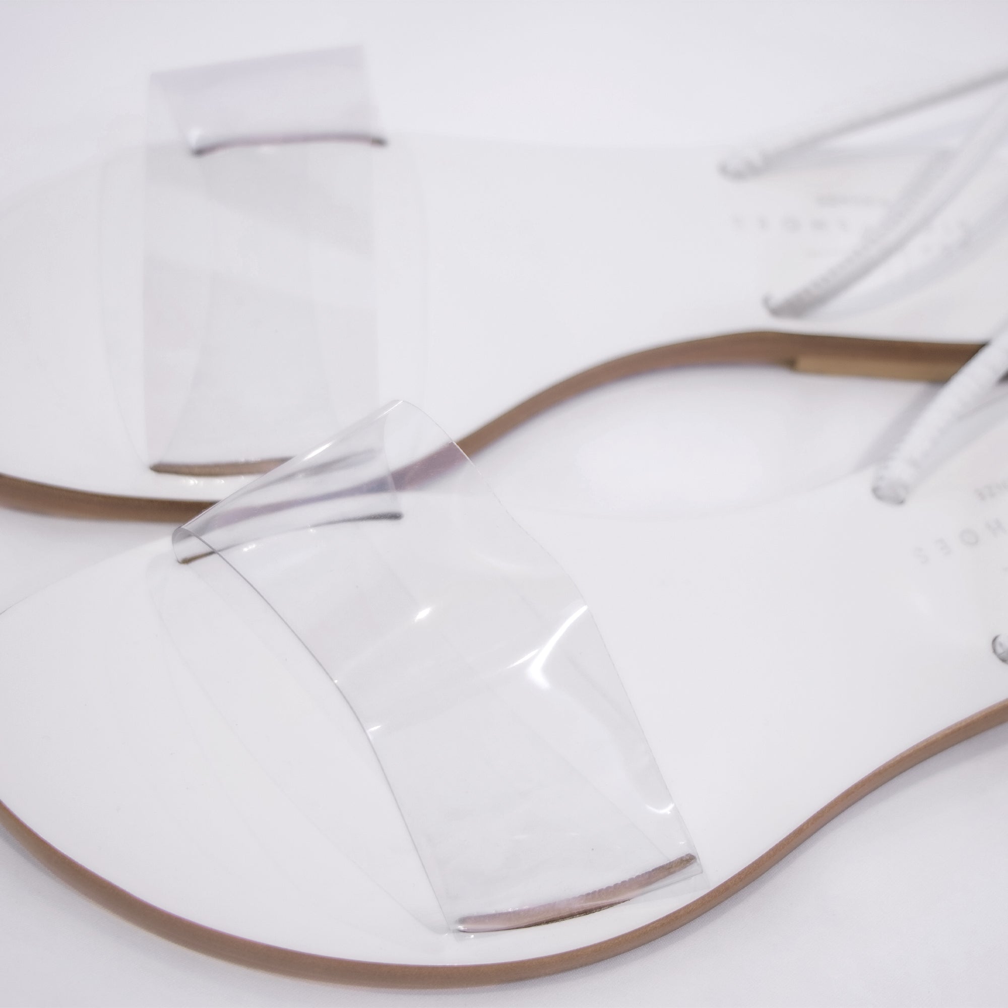PVC素材とトレンドのリボンシューズで足元を軽やかに。