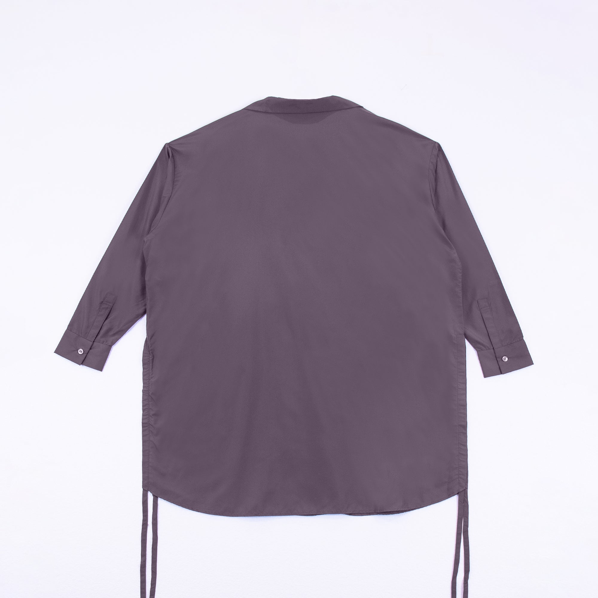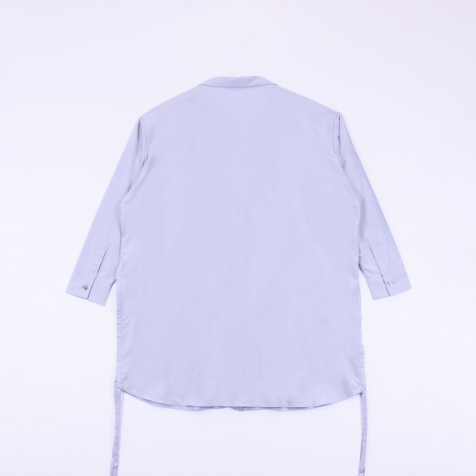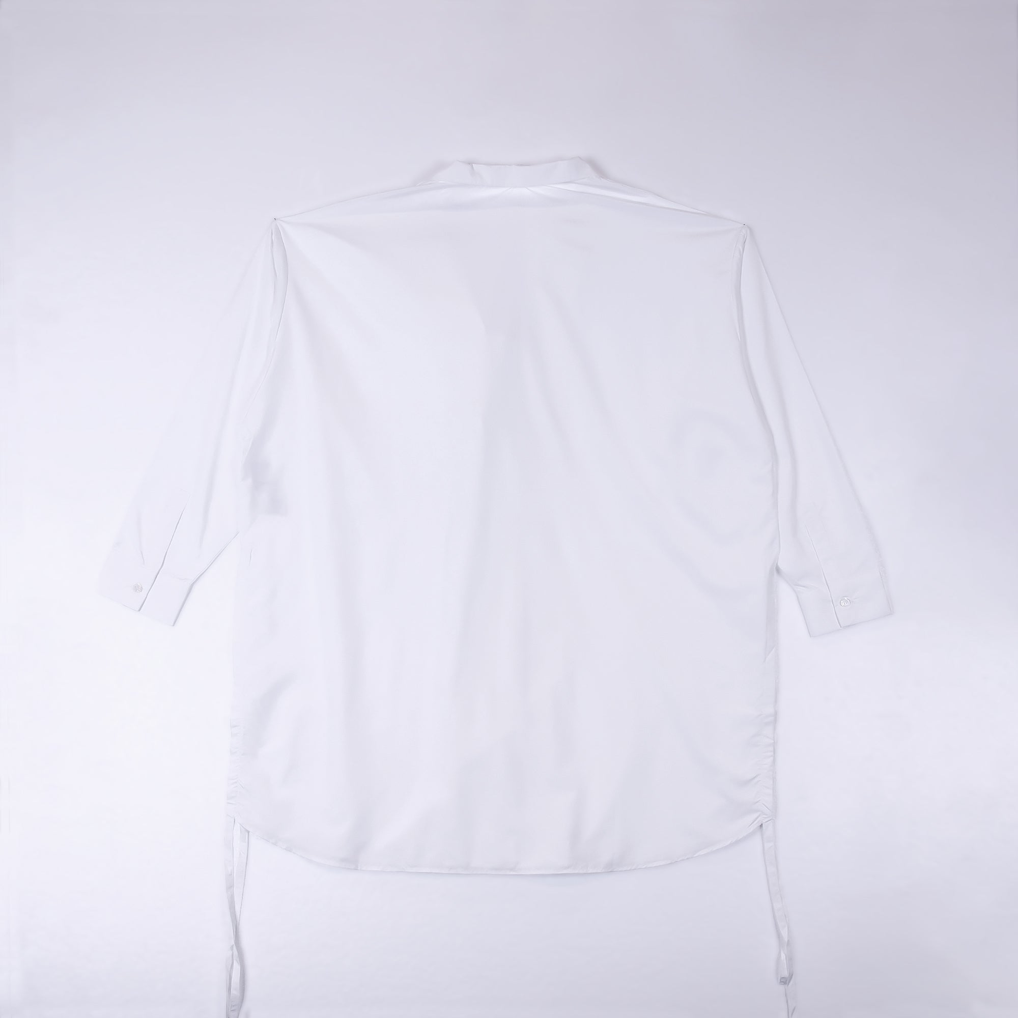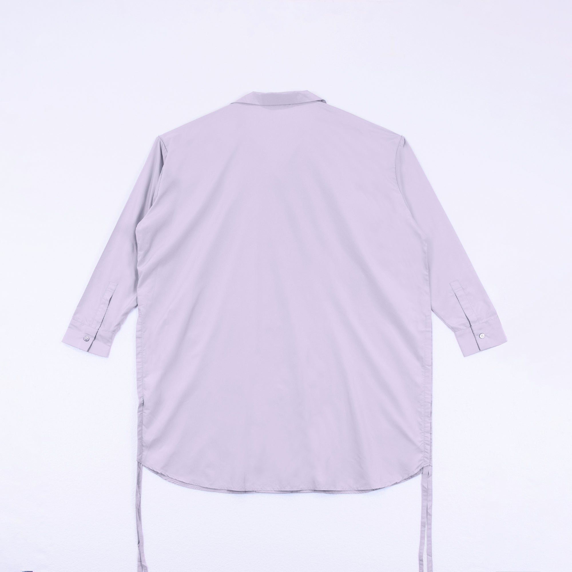 DIFFERENTLYオリジナルデザインのロングシャツ。シンプルながらインパクトのある「D」のバックデザインが映える1着。サイドリボンを絞ることで長さの調節、異なるスタイリングが可能です。
