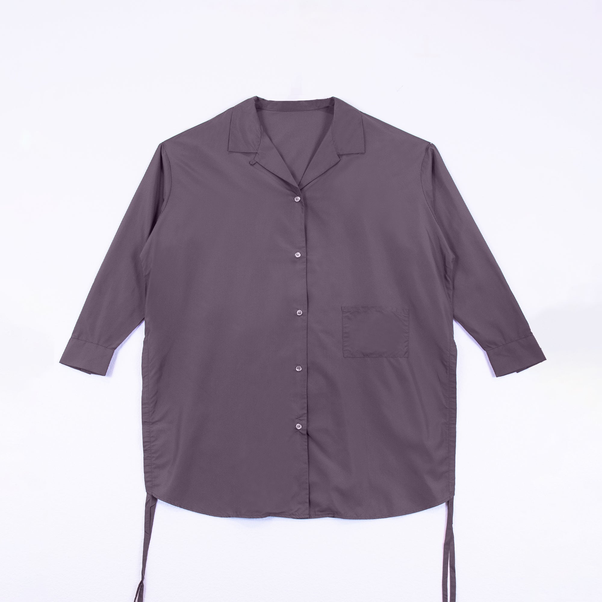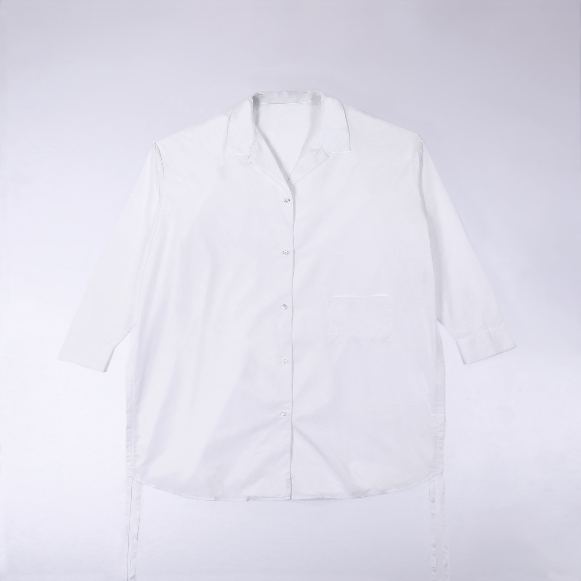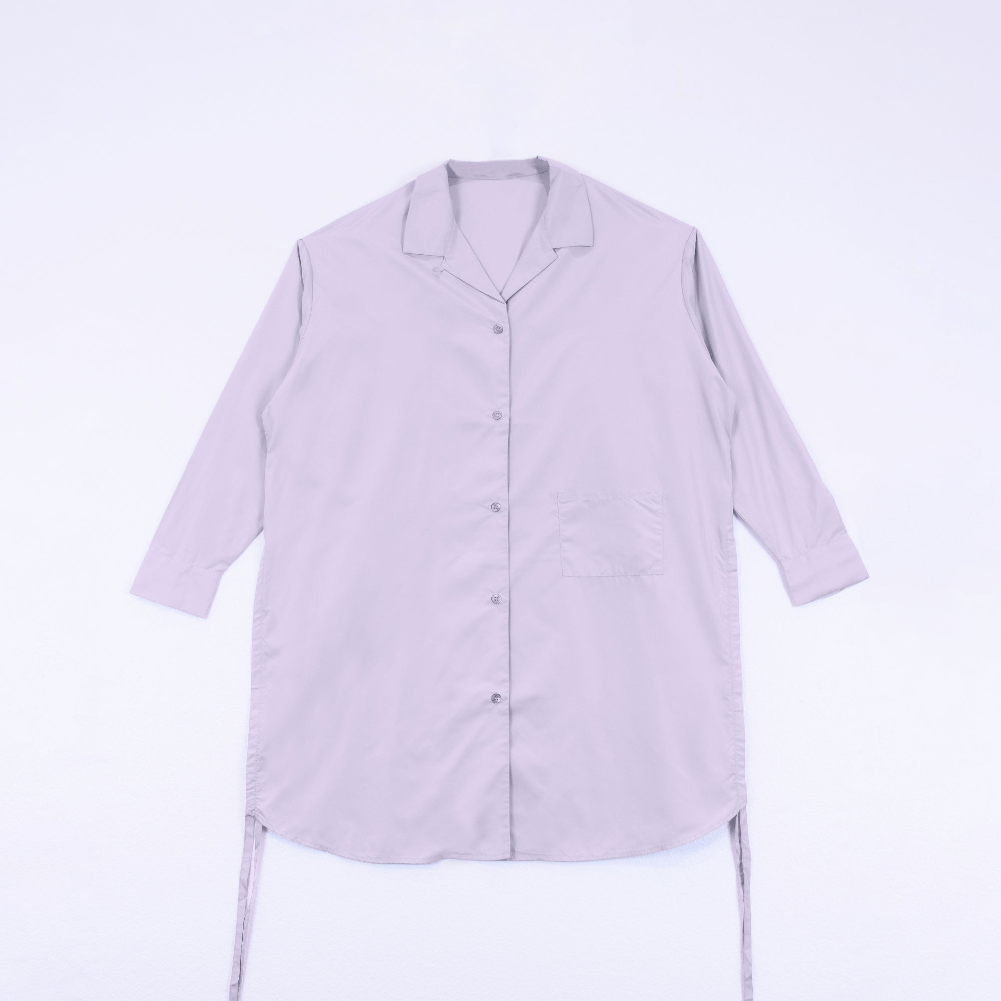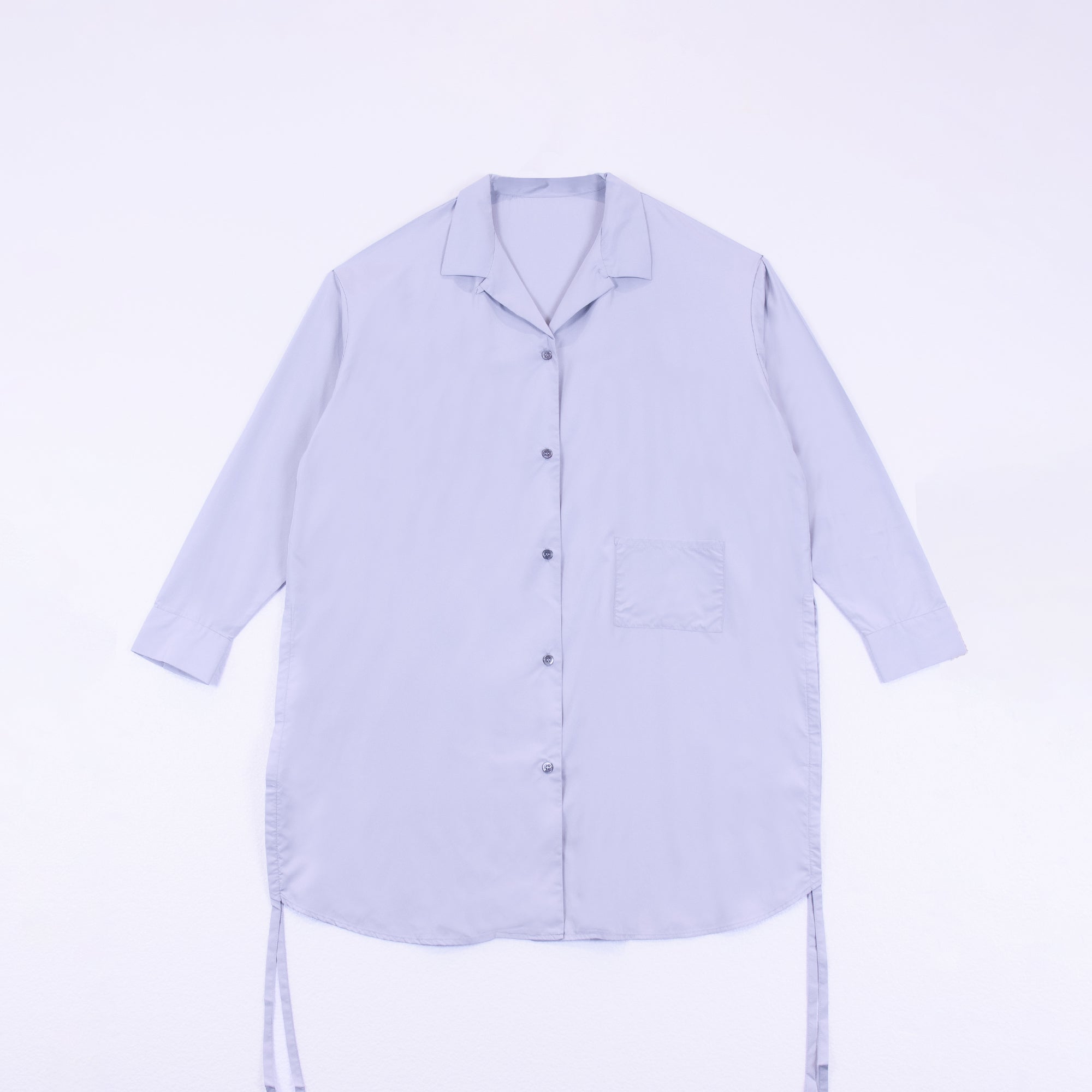 DIFFERENTLYオリジナルデザインのロングシャツ。シンプルながらインパクトのある「D」のバックデザインが映える1着。サイドリボンを絞ることで長さの調節、異なるスタイリングが可能です。